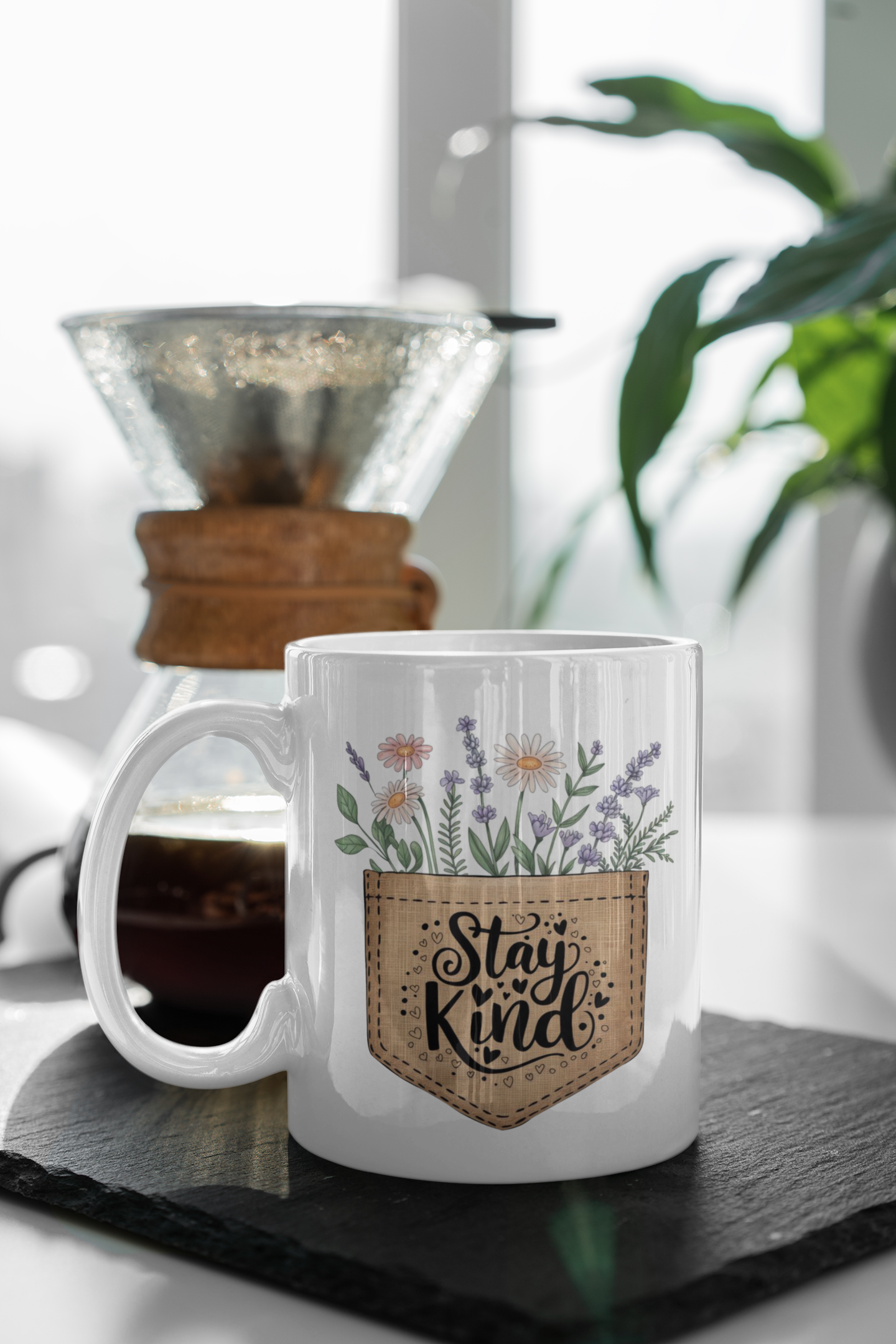 Let your morning brew bloom with positivity. This “Stay Kind” mug features a pocket-style design overflowing with hand-drawn wildflowers, paired with a heartfelt reminder to lead with compassion. Whether you're sipping coffee, tea, or cocoa, it’s a small but meaningful way to brighten your day — or someone else's.